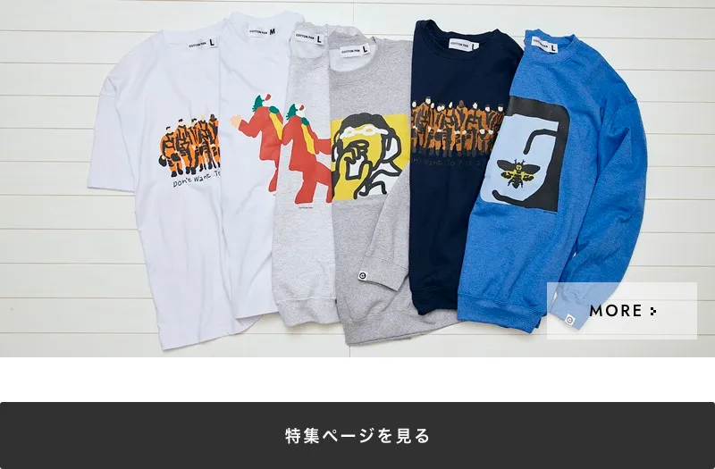 また、描いたイラストをシルクスクリーンプリントで多色、調色にもこだわりぬいて行い、五感を刺激するような表現=カルチャーを着ることを志している。
