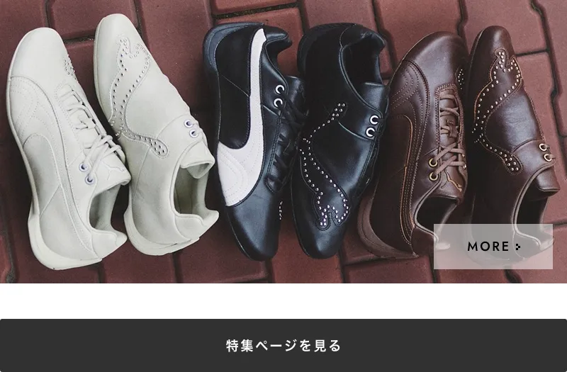 風格のあるレザーに施された、土踏まず側から飛び出るPUMAキャットはスタッズで装飾されている。