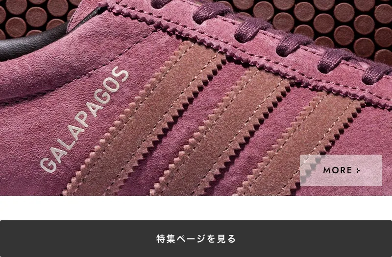 GALAPAGOSの文字とスリーストライプスがヴィンテージの魅力と個性を放つ。