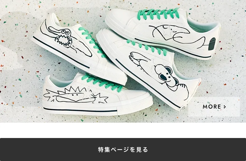 キャンバス素材を採用したONE STARのアッパー、左足と右足、内側と外側にそれぞれ異なる書き下ろしイラストを配置。