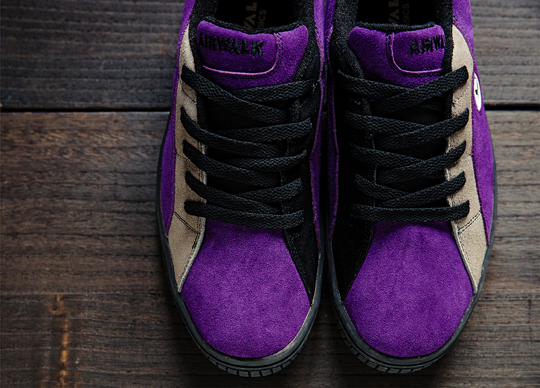 AIR WALKの名作「ONE」をベースにメインカラーに「パープル」を採用。ブラック、グレーを差し込み、洗練された大人のスケシューにアップデート。