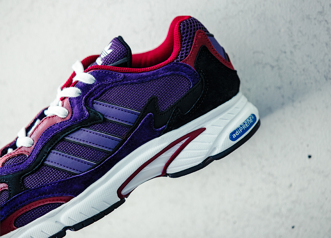 【ADIDAS TEMPER RUN -BILLY'S EXCLUSIVE- 】 1990年代のランニングシューズにインスパイアされたこのモデルは、当時のハイテクスタイルを今に通じるデザインに復活。 アッパーは、メッシュとスエードを組み合わせたレイヤードスタイル。彫りをあしらったEVAミッドソールが、クッション性と軽量化を両立しつつ、レトロな見た目を添えている。 国内では、BILLY’Sのみで展開する限定モデル。