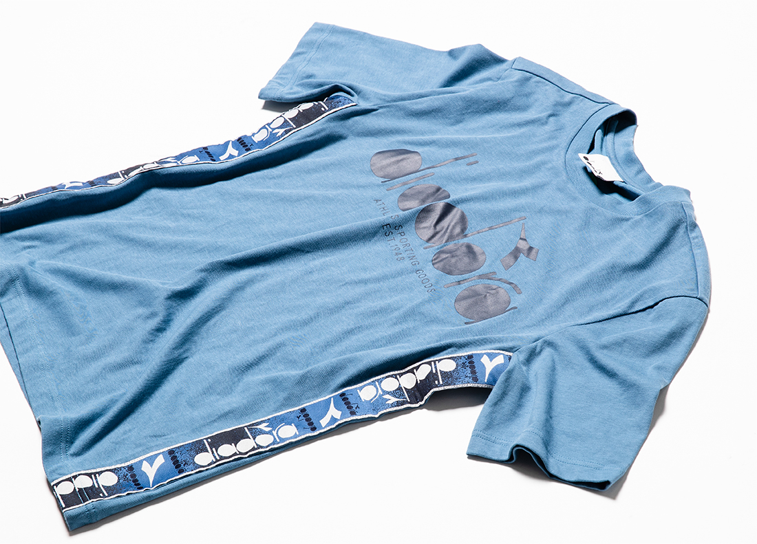 【T-SHIRT SS 5PALLE OFFSIDE】 ラインテープが特徴的なTシャツ。 トラックスーツとの相性の良いデザインに仕上げている。