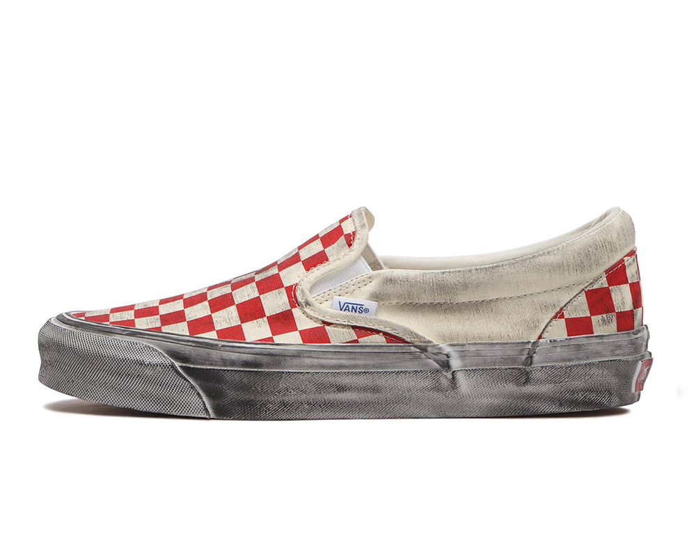 VAULT BY VANSでも定番となるモデル、かつスタンダードなカラーをベースに、アッパーからソールにかけ、そしてシューレースやソールに至るまで手作業で1点ずつユーズド加工が施されており、まるで何年も履き込んできたかと見間違う仕上がりになっている。