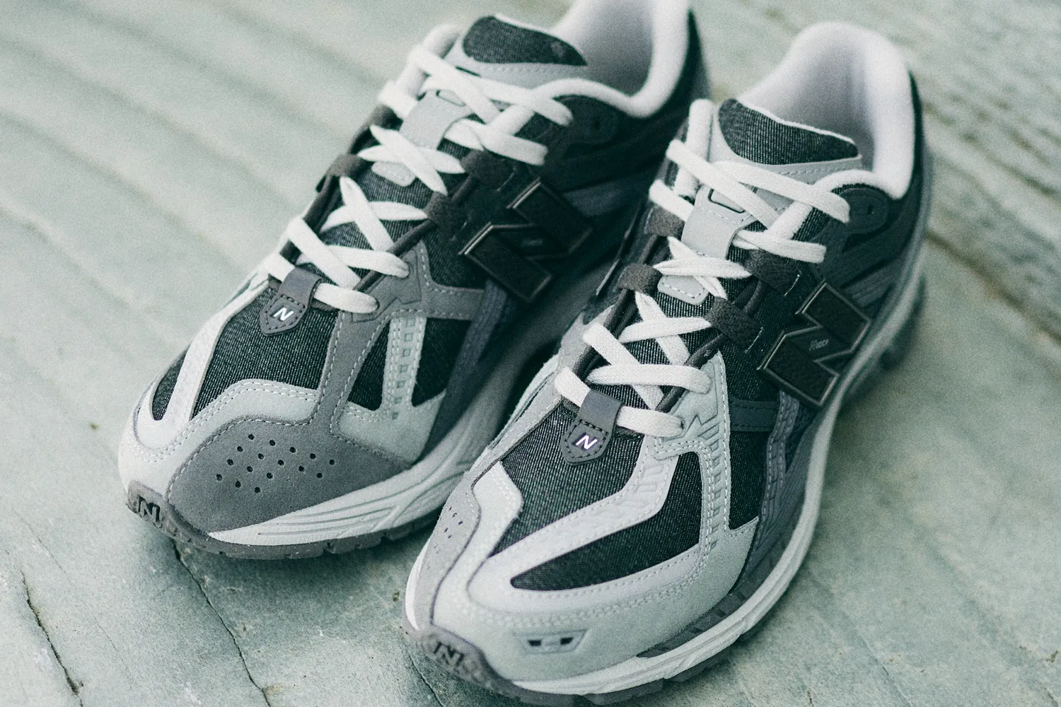 デニムとスエード、シンセティック、メッシュといった複数のマテリアルを組み合わせるも