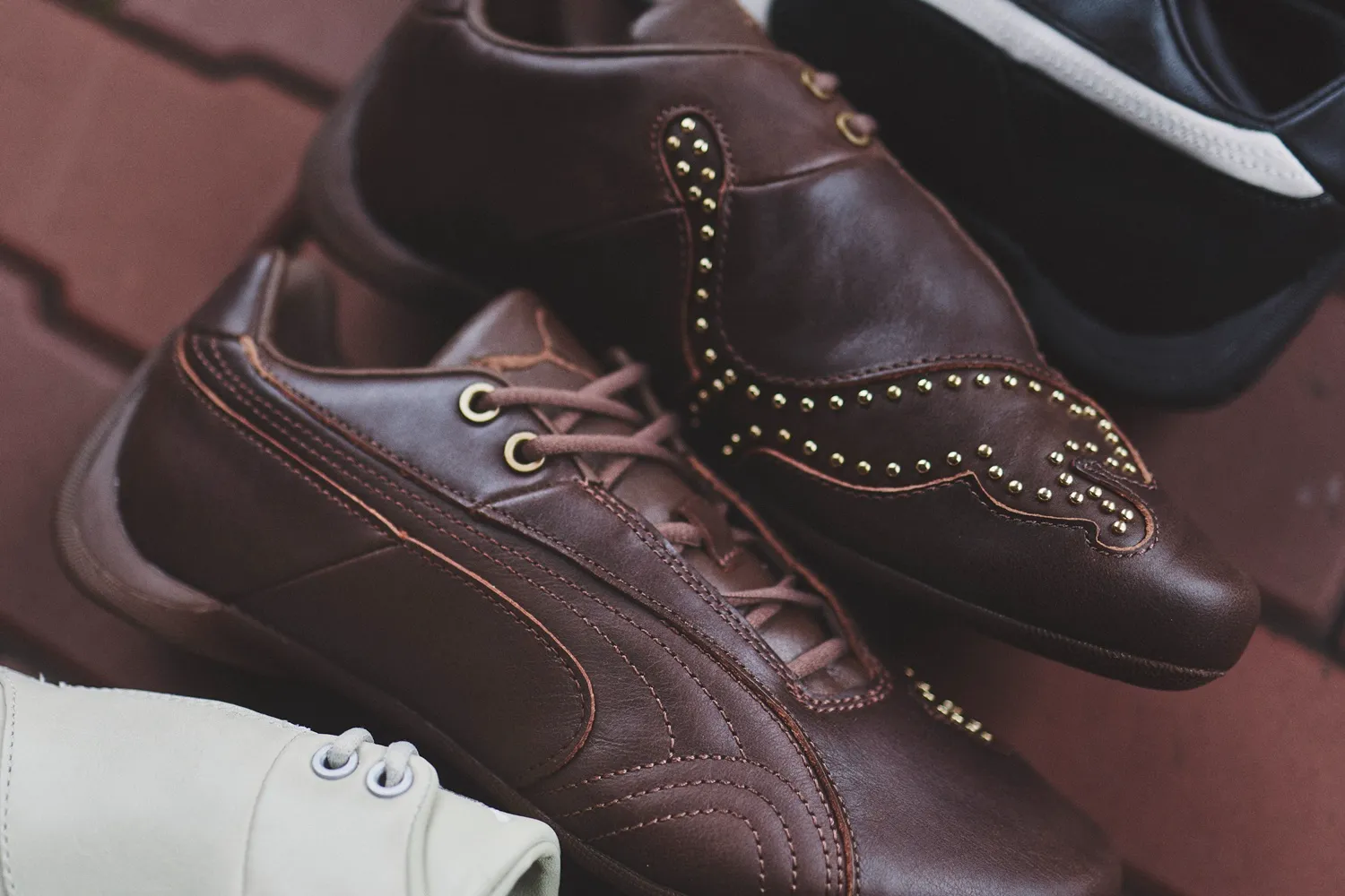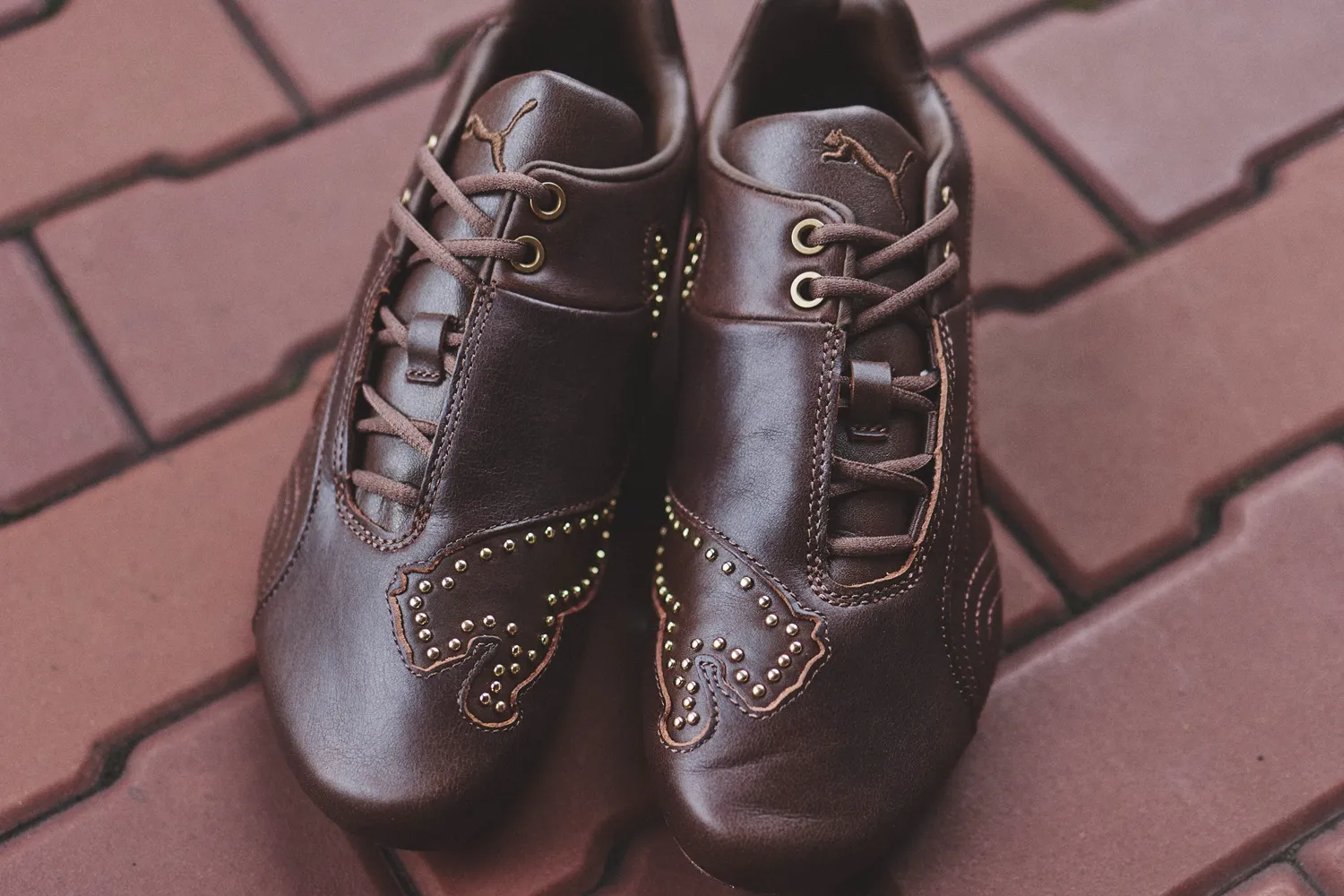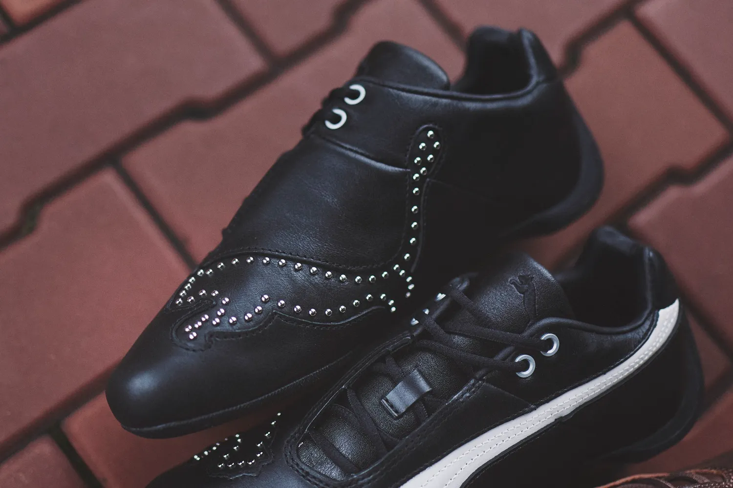 土踏まず側から飛び出るPUMAキャットはメタルスタッズで装飾。