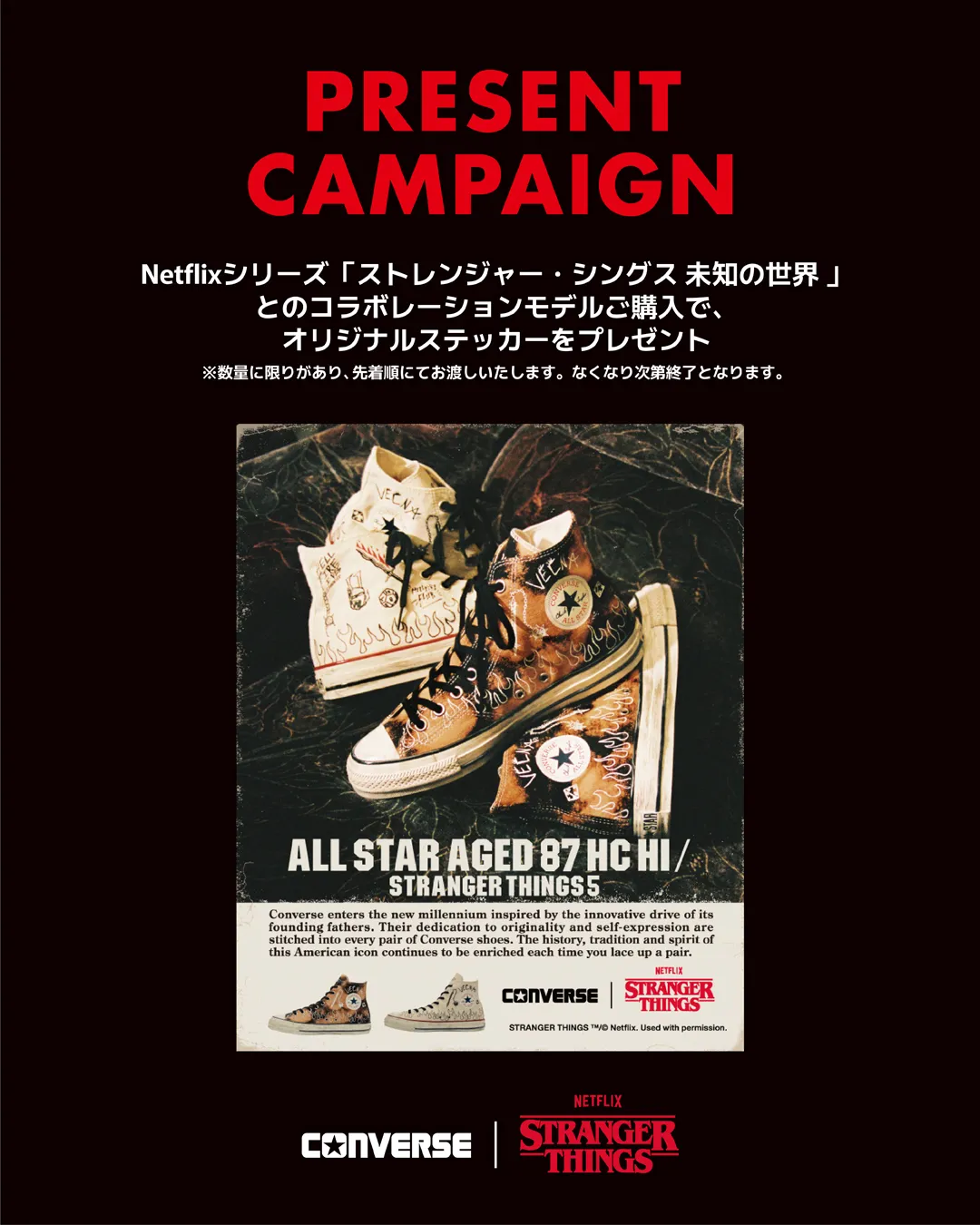 マイクやダスティンといった登場人物が所属するHELLFIRE CLUBをイメージしたALL STAR AGED 87 HC HI / STRANGER THINGS 5。